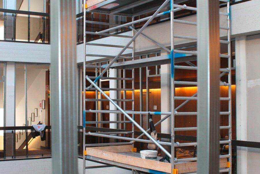 Während der Bauphase im Innenbereich, z. B. für Maler- oder Sanierungsarbeiten, ermöglichen Stand- und Raumgerüste eine sichere und praktische Umsetzung.
