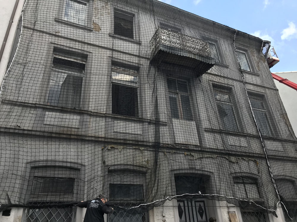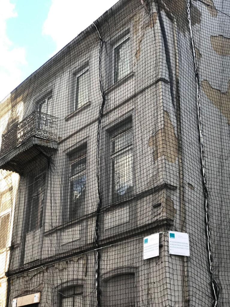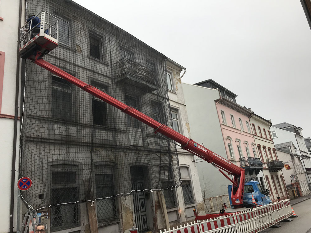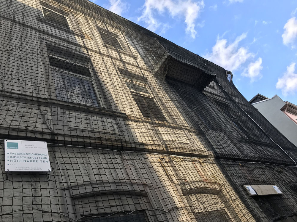 In Bad Homburg in Hessen stellte die bröckelnde Fassade eines leerstehenden Gebäudes eine Gefahr für Passanten dar. Da die Eigentümerin sich nicht um die Wiederherstellung der Sicherheit kümmerte, griff die Stadt ein und beauftragte uns mit der Montage einer Schutznetzkonstruktion. Ein doppelt belegtes Sicherheitsnetz mit einer Größe von 168 m2 wurde von unserem Team an der Fassade montiert und schützt selbst vor kleinsten herabfallenden Putzabbrüchen und Ziegelsteinausbrüchen.